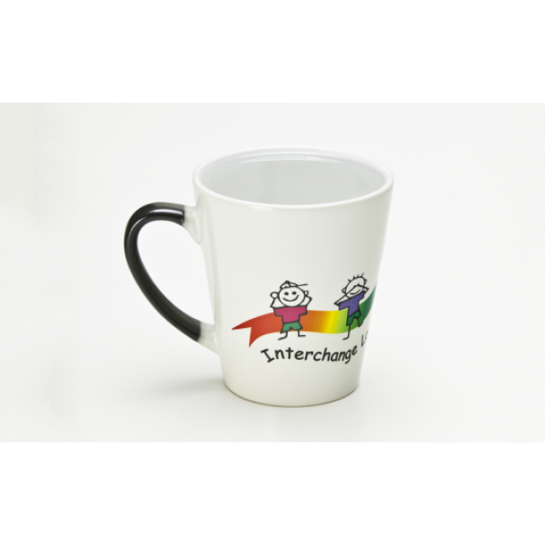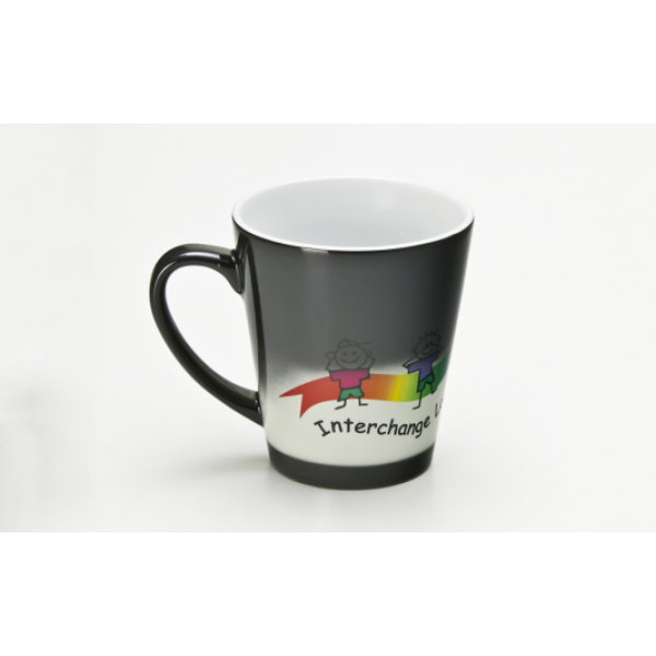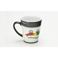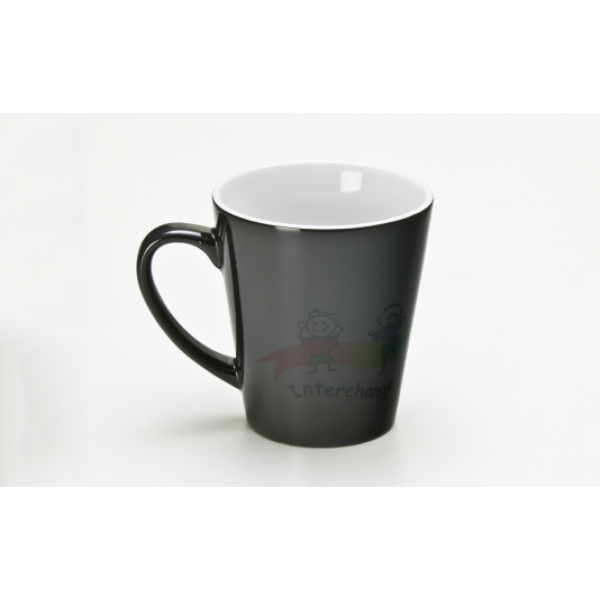 Just by adding hot water, this conical-shaped dye sublimated mug will magically reveal its image! Also available as a Can Magic Mug style. Colours: Charcoal/White (all white when heated). Dimensions: H 102 mm x D 94 mm.