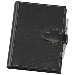 Made from pebble grain bonded leather with white stitching and supplied with a 80 page lined pad.