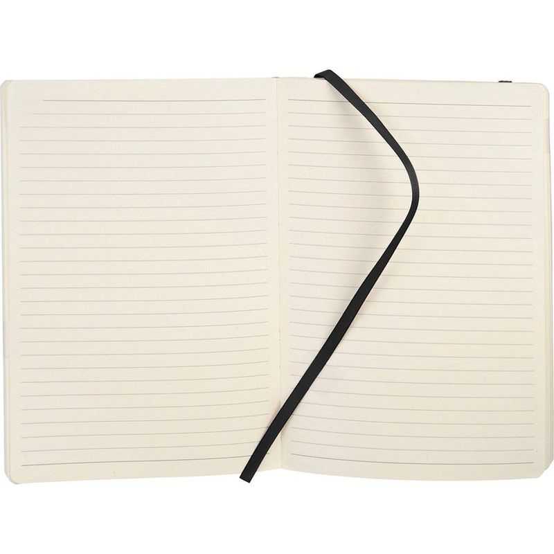 Features: Ribbon page marker. Document pocket on interior back cover. Includes 80 sheets of cream lined paper