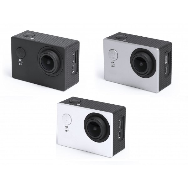 High quality sports camera with HD 4K video capture, compact and resistant design, especially designed for intensive use. Including submersible housing up to 30m depth and a wide range of accessories for adjustment in helmet, handlebars or belt, as well as adjustable straps for head and torso or a 360º twist adapter. The versatility and endurance of this sports camera make it the perfect gadget to capture, with exceptional quality, any sporting activity. With Full HD 1080p camera, micro SD card slot up to 64GB, 2 inches multi-language system LCD screen, and rechargeable via mini USB cable -included-. Presented in an attractive design box. Colours: Black, Grey, White. Dimensions: 16 x 23 x 6 cm.