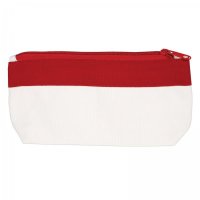 Natural canvas organiser with contrast stripe & zip closure. Use to hold stationery, kids items, cosmetics, first aid items, medications, sample collections, labels, coupons and computer cables. Colours: Natural/Black, Natural/Blue, Natural/Red. Dimensions: 225 x 115mm (LxH).