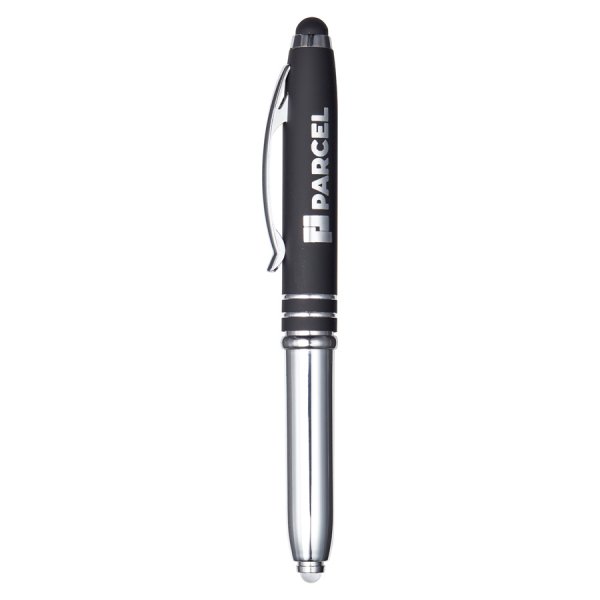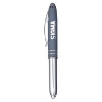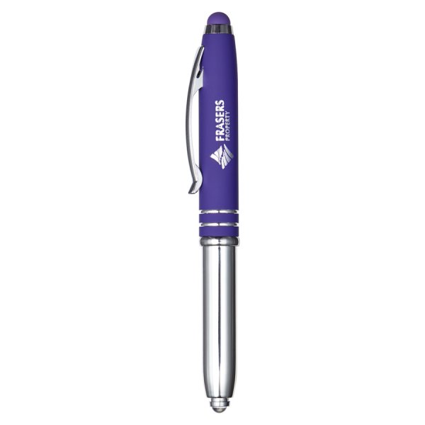 This reversible pen light is a clever multi-tasker. The base detaches and flips to reveal either a push-on LED light or a ballpoint pen, giving you two tools in one. The clip area features a smooth rubberised finish and a matching stylus tip for touchscreen use. Supplied with black ink and a built-in isolator to prevent the light from turning on during shipping. Each pen is engraved to reveal a sleek matte finish for a polished, professional look. Colours: Black, Blue, Grey, Purple, Red. Dimension: 125mm long.