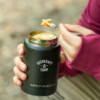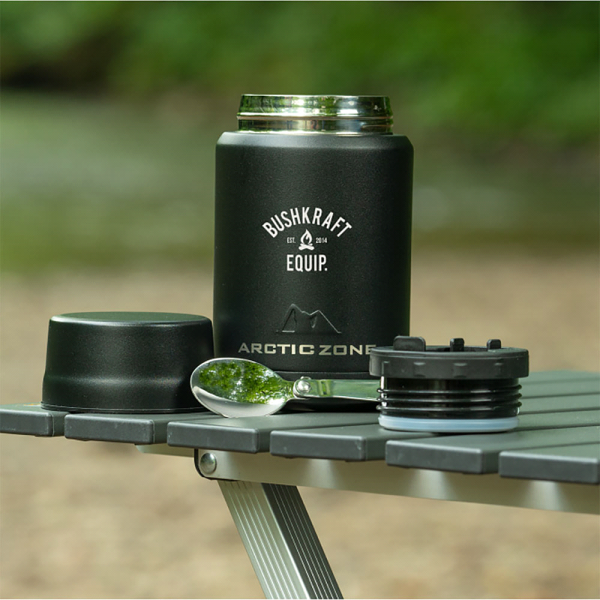 Innovative and on trend this copper insulated food storage container. This is the perfect item for taking food on the go. It includes a foldable spoon conveniently stored inside the lid. 500ml capacity. Keeps food cold for 24 hours and hot for 8 hours. Arctic Zone branded folded PP giftbox. Colours: Black. Dimensions: 75mm(h) x 95mm(w) x 95mm(d).