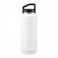 The Arctic Zone® Titan thermal HP® copper bottle 1L is designed for style and durability. Double-wall, 18/8 grade stainless steel vacuum construction with copper insulation keeps beverages hot for up to 12 hours or cold for up to 48 hours. The powder-coated finish helps prevent condensation on the outside of the bottle. The bottle features a coloured, translucent, screw-on, spill-proof lid and a wide mouth opening for easy cleaning and filling. Leed’s exclusive. Colours: Black, Navy, White. Dimensions: 90mm(w) x 276mm(h) x 90mm(d).