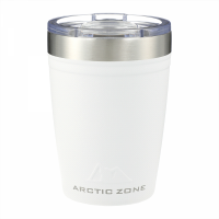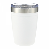 Do not miss the most trendy tumbler of the year. Durable, powder spray colour. Double-wall 18/8 grade stainless steel vacuum construction with copper insulation, which allows your beverage to stay cold for up to 24 hours and at least 8 hours for hot beverages. The construction also prevents condensation on the outside of the tumbler. Easy sipping, push-on lid with slide closure. Wide opening for comfortable filling and pouring. FSC certified premium gift box is included. 350ml capacity. Colours: Black, White. Dimensions: 92mm(w) x 125mm(h) x 87mm(d).