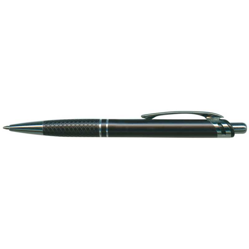 Retractable aluminium ball pen with a matt anodised barrel and shiny chrome accents. It has a black refill with 800 metres of writing ink and the barrel laser engraves to an oxidised white colour. Aria can be presented in an optional velvet sleeve or a gift box.