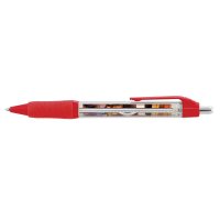 Retractable plastic ballpoint pen with a spring-loaded banner which can be branded in full colour on both sides. The pen has a soft rubber grip, coloured trim, and 1200m of blue or black German manufactured Dokumental ink. A production lead time of 40 working days applies to this product by air freight and larger orders can be sea freighted on request to reduce the freight cost. Colours: Yellow, Orange, Red, Green, Blue, Black. Dimensions: dia 13mm x L 146mm x 15mm (includes clip).
