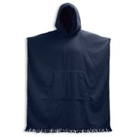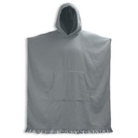 Convenient hooded towel made of 320GSM, 100% cotton. With a fringe trim and kangaroo pocket, this towel is both absorbent and stylish. It has side snaps, terry on the inside, and a flat weave on the outside. Including wash label. Colours: Grey, White, Navy, Black. Dimensions: One size fits most people.