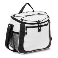 Impressive 13L cooler bag with thick PE foam insulation encased in a waterproof PEVA inner liner. The outer construction is 600D polyester with a large zippered front pocket and two mesh side pockets. Other features include a zippered top closure, smart zipper pulls, a woven carry handle and trendy elastic lacing which is ideal for holding a sweater or light jacket. Colours: White, Yellow, Orange, Red, Bright Green, Light Blue, Royal Blue, Black.