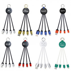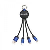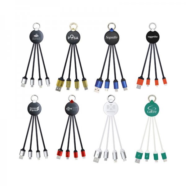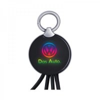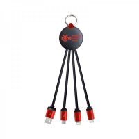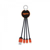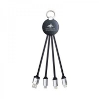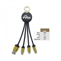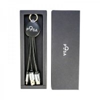 The Atesso charge cable, with double-sided light up branding and 7 standard colour configurations, will bring your logo to life! What makes this product unique is its anti-tangle cable manufactured from high quality 24 AWG copper, plated heads, contrasting connectors and keyring attachment. In addition, the Atesso cable can be packaged in a press lock pouch or slide gift box that can be fully customised to further enhance your brand. Suitable for all mobile devices by providing USB to Micro USB, 6 Pin (lightning) and Type-C connections. Please note we can add NFC chips to these cables to connect with online data. Colours: Black, Blue, Gold, Green, Orange, Red, White. Dimensions: Cable Head: 39 x 35 x 11.5 mm, Length: 150 mm.