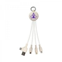 The Atesso II charge cable is manufactured from degradable corn & wheat straw, TPE and high grade 24 AWG copper wire to help speed up the charge times. Providing a patented dual Type-C and USB input connector with Micro, Type-C and 6 Pin (iOS) output connectors, this cable delivers 2.4 Amp maximum output. In addition, the Atesso II includes a chrome snap hook and is packed in a kraft box that can be customised to enhance your brand further. Suitable for all mobile devices, including smartphones, earbuds and power banks. Colours: Natural. Dimensions: Cable Head: 39 x 35 x 11.5 mm, Length: 150 mm.