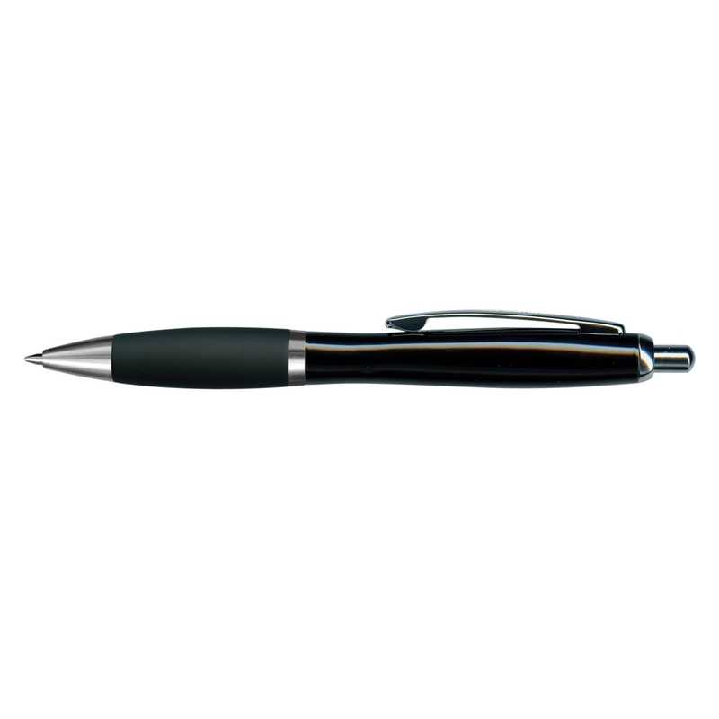 Retractable brass barrel ball pen with a lacquered barrel, a soft touch rubber lacquered grip and shiny chrome accents. It has a black large volume refill with 1200 metres of writing ink and blue is available for an additional charge. Atlantis laser engraves to a brass colour and can be presented in an optional velvet sleeve or a gift box.