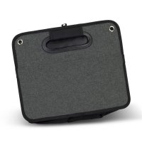 Versatile and durable storage solution designed to keep your car trunk organised. It is made from sturdy 600D polyester material and has a 40L capacity. It has three compartments that are perfect for separating and organizing different items. The organiser has a solid base, providing stability, and an elastic closure and metal eyelets to keep your items secure. Care label included. Colours: Black/Heather Grey. Dimension: Closed: W 324mm x H 263mm x L 40mm. Open: W 324mm x H 263mm x L 740mm.