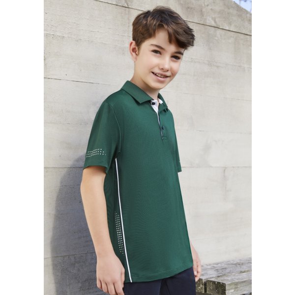 An exclusive stretch honeycomb weave performance polo with signature contrast piping and accent prints. Colours: Green Forest. Sizes: Kids 4 - 16, Ladies 6 - 24, Mens S - 3XL, 5XL.