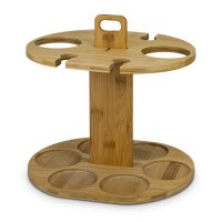 Bamboo wine rack that can hold four glasses and two standard bottles. The rack comes with a wine glass hanger, a base, a bracket, and a screwdriver with four screws, making it portable and simple to assemble. Colours: Natural. Dimensions: H 300mm x W 295mm x 250mmm.