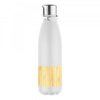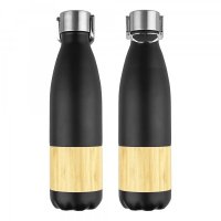 Elegant slim 450ml vacuum insulated, double wall 304 stainless steel drink bottle. Screw on metal lid with a silicone pannel in black or white on the handle. BPA free. Featuring an eco-friendly sustainably sourced natural bamboo outer pannel which can be engraved and powder coated matt finish in black or white. Hand wash only, do not microwave. Natural bamboo material which produces unavoidable variances in the grain pattern, colour and branding. Optional packaging into the Drink Bottle Gift Tube. Colours: Black, White. Dimensions: 264mmH x 71mmD.