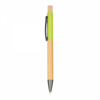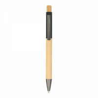 Click action bamboo pen, Rubberized coloured barrel, Bamboo grip, Gunmetal sprayed clip, tip and trims. 1.0mm Black ink slim refill, German Dokumental Black Ink, T.C. Nib. Colours: Black, Blue, Dark Grey, Light Green, Natural, Olive, Red, White. Dimensions:
