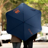 The BLUNT Sport umbrella is big and strong, perfect for golfers, side line coaches and those who’d rather be out in the wild than inside on the couch. The 190T pongee canopy can be opened with one simple push and the six rib 84cm aluminium and steel frame is designed to withstand winds of up to 115km/h. All BLUNT umbrellas feature patented tips that open like miniature umbrellas within pockets at the canopy edge to reinforce the umbrella. They also create even tension across the canopy and give BLUNT umbrellas their highly recognisable trademarked shape. The BLUNT logo is subtly debossed on the easy-grip handle and discreetly branded on the edge of the canopy and the Velcro closure strap. The Sport has a matching carry sleeve with side zip and is presented in an unbleached cardboard box. The branding on the box is subject to change and each umbrella is backed by a two-year global manufacturer’s warranty. The BLUNT Sport umbrella has strict guidelines on PMS colours and placement, please refer to the branding template for more information. BLUNT reserves the right to decline any custom project or artwork that does not align with its brand on a case-by-case basis. Colours: Charcoal/Black, Navy/Orange, Black/Light Blue.