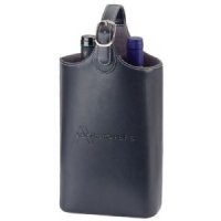 Two bottle wine carrier made from bonded leather with suede interior and supplied in a black two-part gift box. Features stylish silver stitching, suede lining, adjustable metal carry handle. Wine not included. Dimensions: 320mm(h) x 190mm(w) x 90mm(d).