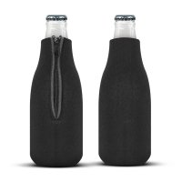 Zip up wetsuit style stubby holder that will fit most stubby size bottles. It is manufactured from laminated open cell foam material which has powerful insulation properties to keep drinks cool as well as preventing cold wet hands when holding chilled bottles. Bottle Buddy is supplied flat packed for economical transportation and storage. Colours: Red, Dark Green, Royal Blue, Navy, Black. Dimensions: H 200mm x W 108mm. Front - 45mm x 65mm (one colour)