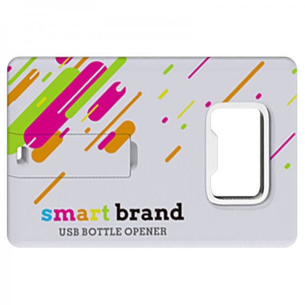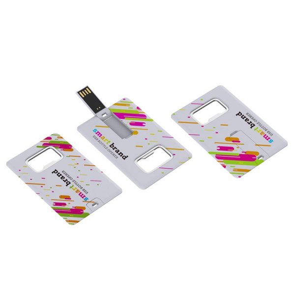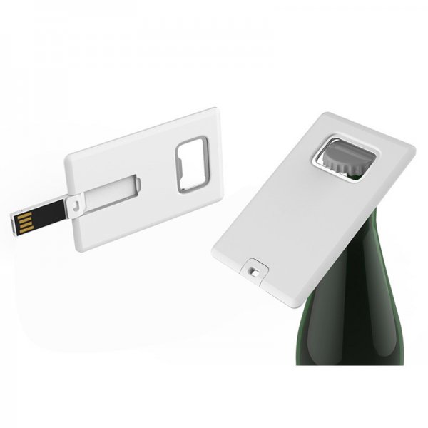 Credit card style flash drive complete with built-in steel bottle opener, Grade A memory, ten-year data retention warranty, two-year replacement warranty on faulty manufacture. Design Patent: 201730341526.0. Free Data upload to 150MB on all indent orders. Colours: Custom. Dimensions: 85 x 55 x 3.5 mm.