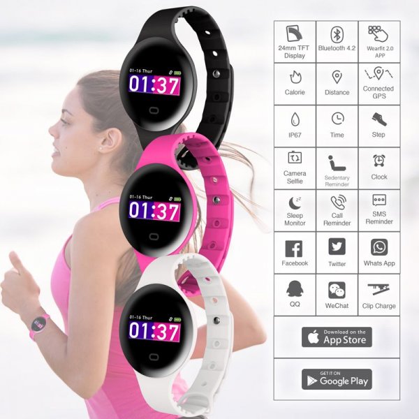 The Brooks smart band with a press-stud silicone strap combination and TFT colour touch screen records all aspects of your daily exercise regime. With GPS functionality to mark the start and finish points, this smart band counts your steps, distance travelled, and calories burnt. The Brooks also includes a wake-up sensor, sleep monitor and selfie remote while still monitoring your inbound calls, SMS, WhatsApp and Social media alerts. Simply download the user-friendly APP, connect the Bluetooth and synchronise the data to your iPhone or Android Smart phone for easy management. Includes; USB clip charger and user manual. Colours: Black, Blue, Green, Orange, Pink. Dimensions: 235 x 40 x 11.7 mm.