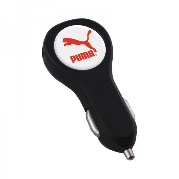 The LED illuminated logo display brings your brand the attention it deserves. With a universal input voltage: 12-24V DC and its high power, double USB, 2.1A power output you can easily charge two high power demanding devices like tablets at once. Providing 2 methods of output protection by fuse and IC chip protection the Bulb comes with a 1 year manufactures warranty. Suitable for smartphones, tablets, cameras and any other 5V DC powered device. Colours: Black. Dimensions: 75 x 35 x 15 mm.
