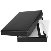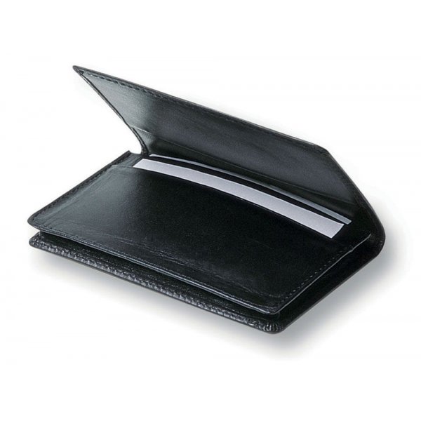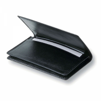 Business card holder made from Brazilian cowhide leather. Internal pockets and 10mm gusset and holds approximately 20 business cards. Pocket size 10.5cm (w) 5cm (h). Packaged in a polybag and presented in a plain black 2 part gift box. Colours: Black. Dimensions: 110mm(w) x 70mm(h) with 10mm gusset.