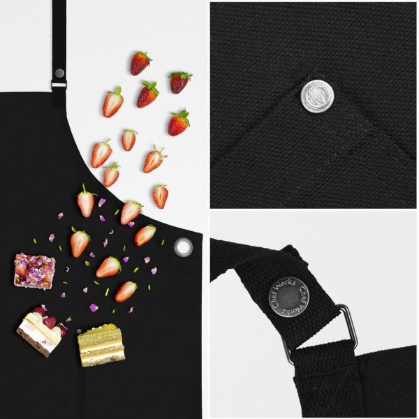 Created with a Canvas Cotton fabric, these aprons provide strength and breath-ability. The tight weave of the fabric gives increased resistance against splashes and spills and ensures the fabric keeps its shape.