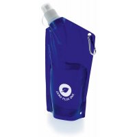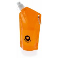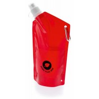 Laminated drink bottle with 5mm aluminum carabiner (not suitable for climbing). Features a twist-on, push/pull drink spout with removable cap. Colours: Blue, Orange, Red. Dimensions: 40 x 282 x 150mm.