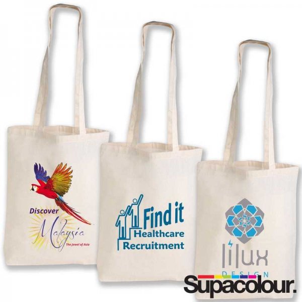 Double long handle calico tote bag. Ideal for environmental projects as calico is a renewable resource. Join War on Waste movement to reduce single use plastic bags. Eco Credentials: renewable, reusable and biodegradable. Colours: Natural.