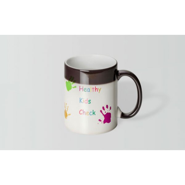 Add any hot beverage to your Can Magic mug, and experience a delightful surprise as a colourful dye sublimated image magically appears! Colours: Red/White, Charcoal/White. Dimensions: H 102 mm; D 94 mm.