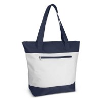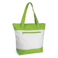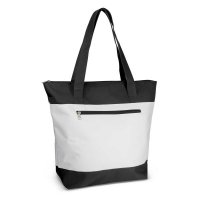 Smart two-tone tote bag with a rounded gusset and a sewn in base for added capacity. It is manufactured from tough 600D polyester and has a zippered front pocket, a secure zippered top closure and long woven carry handles so it can be comfortably carried on a shoulder. Colours: Light Grey, Orange, Red, Bright Green, Light Blue, Royal Blue, Navy, Black. Dimensions: H 370mm x W 415mm x Gusset 130mm (excludes handles).