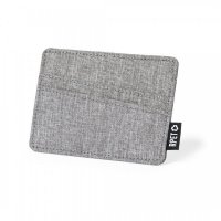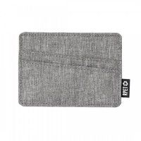 Basic Card Holder made of 300D polyester RPET, with 3 independent compartments for cards and RPET outside label. RPET material is made from recycled plastic, promoting the re-purpose of plastic waste. Colours: Black, Grey, Navy. Dimensions: 10.6 x 7.6 x 0.3cm, 10 grams.
