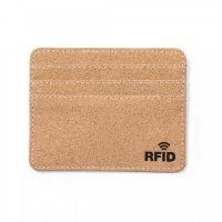 Elegant card holder made of natural cork. With 6 independent compartments for cards. RFID (Radio Frequency Identification) security technology that keeps card data safe. RFID distinctive logo outside. Colours: Natural. Dimensions: 10.5 x 8.5 x 0.5cm, 16 grams.
