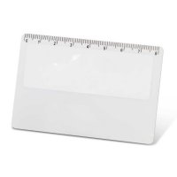 Handy credit card sized magnifier with an 8cm ruler on one edge. Colours: White. Dimensions: W 85mm x L 56mm x 1mm.