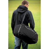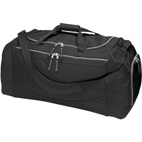Large volume, classic designed duffle bag featuring denier shell fabric, fully adjustable padded shoulder strap, large zippered flap opening to main compartment with end side zippered pockets. 118 litres of storage means a lot of space to go around for all your luggage. Bring it on long trips and overseas as your primary travel bag. Colours: Black. Dimensions: Dimensions: 38cm w x 44cm h x 70cm l.
