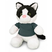Soft cat plush toy with embroidered eyes and a polyester t-shirt which is available in eleven colours. Plush animals provide a cute and cuddly branding option and are great for brand recognition and spreading goodwill. Dimensions: 220mm (seated).
