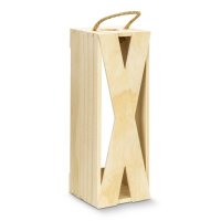 Elegant crate-style wine box that presents a unique gifting opportunity. The crate is designed to hold one standard wine bottle and is made from natural pine wood with a reinforced base. A raw rope handle makes it easy to carry and adds to the natural aesthetic. Colours: Natural. Dimensions: H 293mm x W 102mm x 98mm (excludes handle). Handle Length: 205mm.