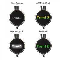 Light-Up Logo, Pad Print, 4CP Digital Print on cable retainer 20 x 20 mm, 20 x 16 mm (Engraved), on backing card 210 x 59 mm