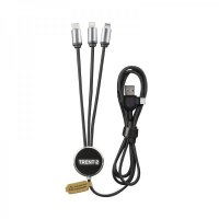 The Trent II LED charge cable with its light-up branding will bring your brand to life. Designed with a patented dual Type-C and USB input connector with Type-C, 6 Pin iOS and Micro USB output connectors. The Trent II is manufactured from recycled plastic bottles (rPET), high quality 24 AWG copper for quicker charging and is available in various LED and connector colours. In addition, the Trent II can charge 3 devices simultaneously and is packed in a recycled kraft box that can be customised to further enhance your brand. Suitable for all mobile devices, including smartphones, earbuds and power banks. Colours: Black, Blue/Black, Blue/White, Green/Black, Grey/Black, Orange/Black, Red/Black, Red/White, Silver/Black, Silver/White, White. Dimensions: Cable Retainer: 34 dia. x 8 mm; Cable Length: 120 cm.