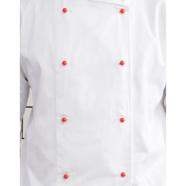 Set of 8 interchangeable buttons. Suitable for either Chef Long Sleeve Jacket or Chef Short Sleeve Jacket. Colours: Black, Pink, Red, White. Sizes: 18mm x 18mm.