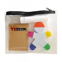 Children's Bundle includes Vincent 8CT Crayon Set, 15g Smart Glue Stick, Little Man Highlighter and packed in a PVC Pencil Clear Case. Colours: Clear. Dimensions: 150mmW x 180mmH x 215mmD.