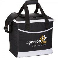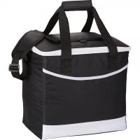Zippered main compartment holds 36 cans. Easy access front pocket. Insulated leak proof PEVA lining. Main compartment capacity is approximately 25 litres. Colours: Royal Blue, White. Dimensions: 330mm(w) x 315mm(h) x 200mm(d).