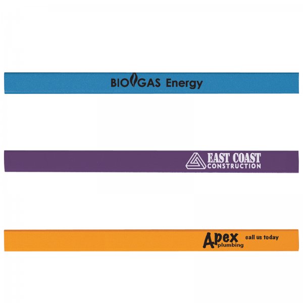 Unsharpened timber carpenters pencil. Colours: Custom. Dimensions: 175 x 13 x 7mm (LxHxD).