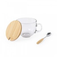 Nature line mug with 420ml capacity with bamboo lid and matching stainless steel spoon with wooden handle. Presented in an attractive design eco friendly packaging. Colours: Natural. Dimensions: 13.3 x 10.7 x 13cm, 390 grams.