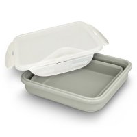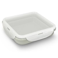 Manufactured from food-grade silicone and polypropylene, this BPA-free collapsible lunchbox is microwave safe and is perfect for lunch on the go. The square container expands to hold up to 800ml and can be collapsed down for compact storage. The secure lid provides a large branding area and features four clip closures to prevent leaks. Colours: Grey. Dimensions: W 170mm x L 170mm x H 38mm (Collapsed). W 170mm x L 170mm x H 78mm (Extended).