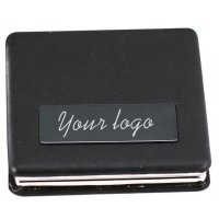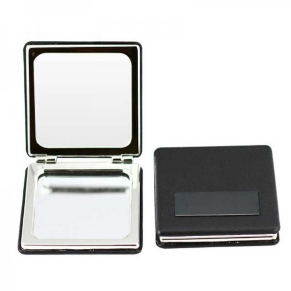 Compact mirror, PU outside, 1xplane and 1x2 times magnify mirror. Colours: Black. Dimensions: 58 x 58 x 10mm.