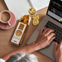 Boost your brand recognition with this unique cookie pack. Choose between chocolate chip or Anzac cookies and customise the box with edge-to-edge full-colour printing for a personal touch. Each box contains approximately 10 cookies (180g), features a complete nutritional label, and has a 6-month shelf life. This unique gift is perfect for events, corporate gifting, or spreading brand joy. Made in New Zealand. Colours: White. Dimensions: Box: H 184mm x W 75mm x 61mm.