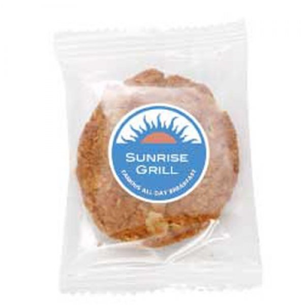 Cookies individually wrapped, branded with a custom printed sticker. Fun for all ages, this cafe style cookies taste sweet.